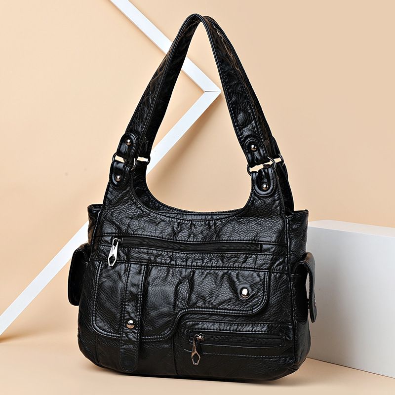 Borsa da moto multifunzionale da donna in pelle lavata con tracolla e scomparto patchwork