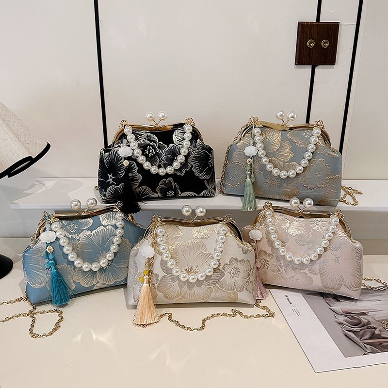Borsa da sera da donna con perline e ricami in stile cinese, nuova moda 2025, borsa a tracolla con catena
