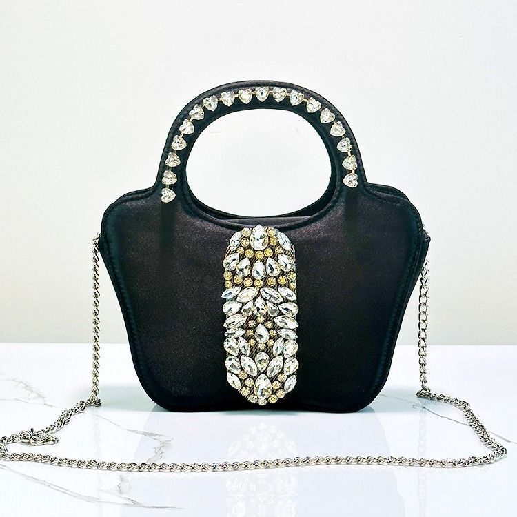 Borsa da sera da donna con strass, intarsiata con diamanti, in raso, a farfalla, con paillettes e cristallo leggero