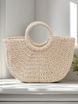 Borsa da spiaggia da donna in paglia rotonda, versatile e alla moda, realizzata a mano