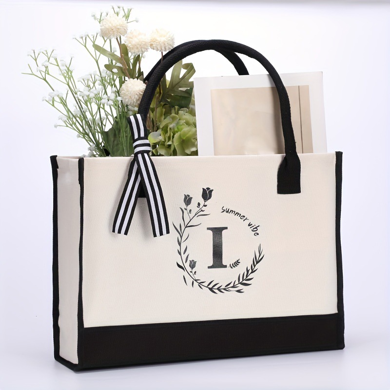 Cotton Personalized Letter Canvas Bag Spliced Tote Women's Bag Handheld Shopping Bag Beach Bag