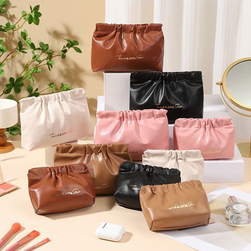 Shrapnel Wrinkle Lipstick Bag Earphone Cosmetic Storage Bag PU Makeup Bag Coin Purse Simple Portable Travel Bag