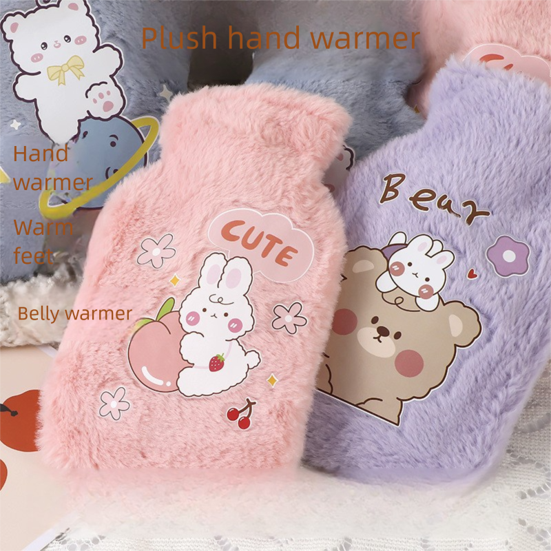 Soft Rabbit Fur Hot Water Bottle Refillable Bag Hand Warmer Thickened Explosion-Proof Plush Cartoon Hot Water Bag