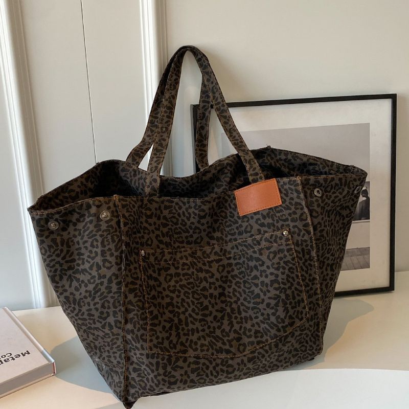 Fashion Leopard Print Large Capacity Women's Tote Bag Shoulder Underarm Bag Canvas Large Bag