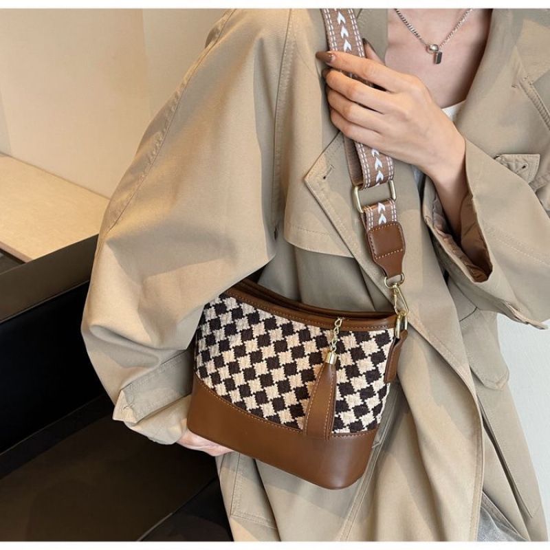Women's Multifunctional Bucket Bag 2025 Fall/Winter New Wide Strap Crossbody Bag Stylish Versatile