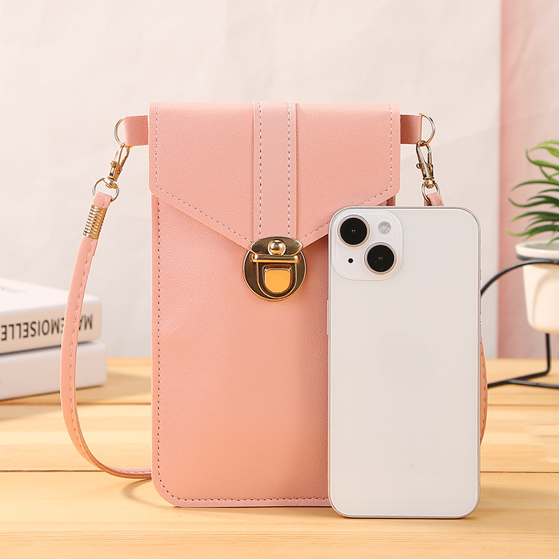 Women's bag Thin style trendy lock buckle Cross body mobile phone bag Touch screen mobile wallet Female student buckle wallet