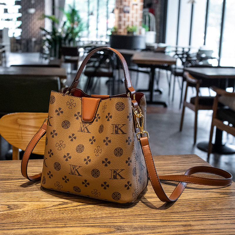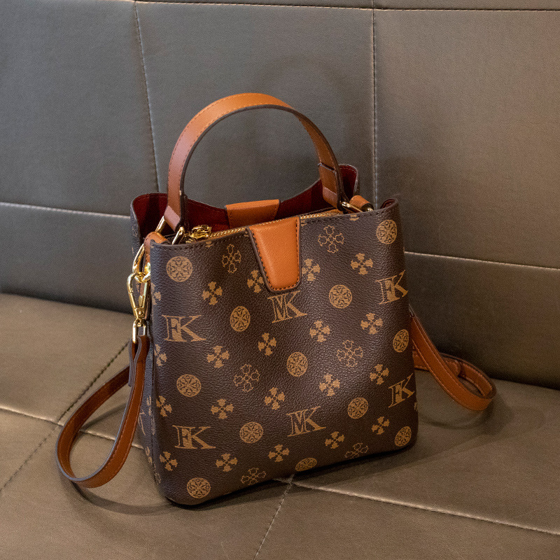 Hong Kong genuine leather handbag for women in 2024, new trendy and fashionable women's bag, single shoulder crossbody color matching vintage bucket bag