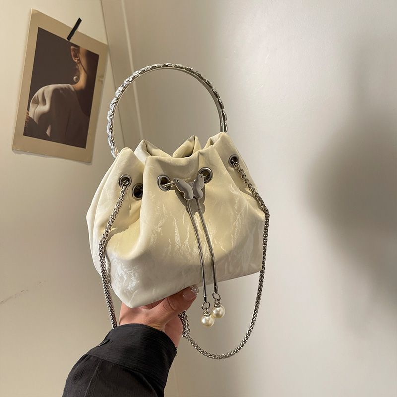 Silver Handheld Bucket Bag for Women 2025 New Summer Style Niche Light Luxury Chain Crossbody Cloud Bag
