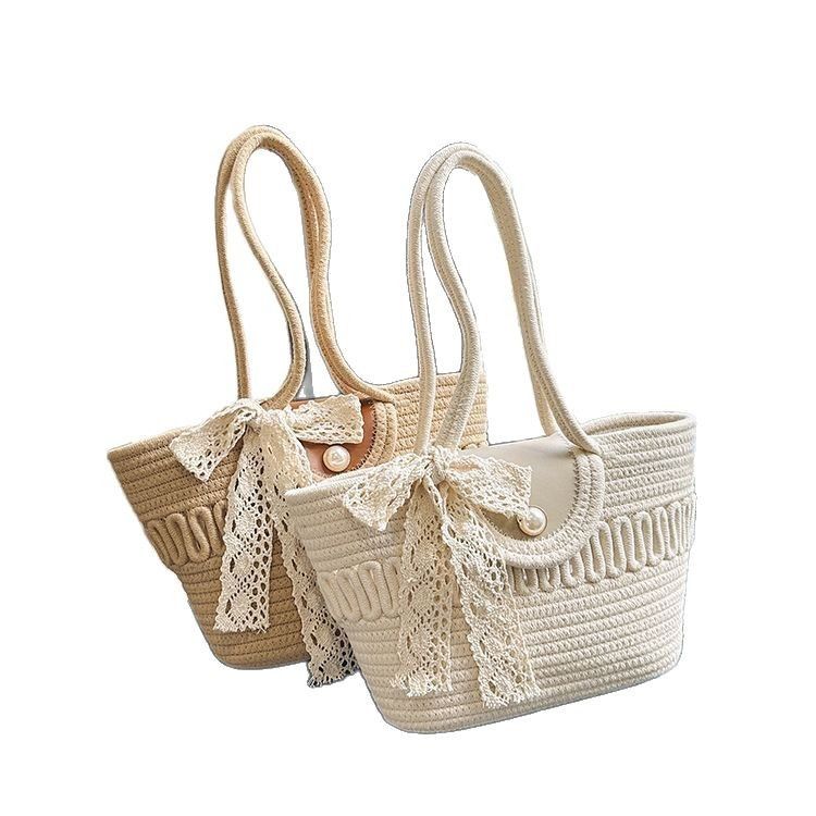 Borsa tote in paglia intrecciata per donna, grande capacità, stile estivo 2024, versatile e di alta qualità