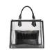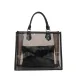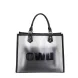Borsa tote trasparente nera satinata con tasca interna, grande capacità, borsa da spiaggia casual alla moda con stampa di lettere