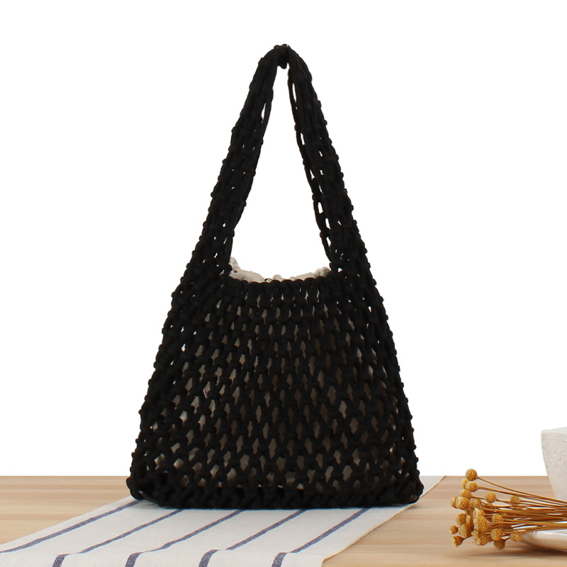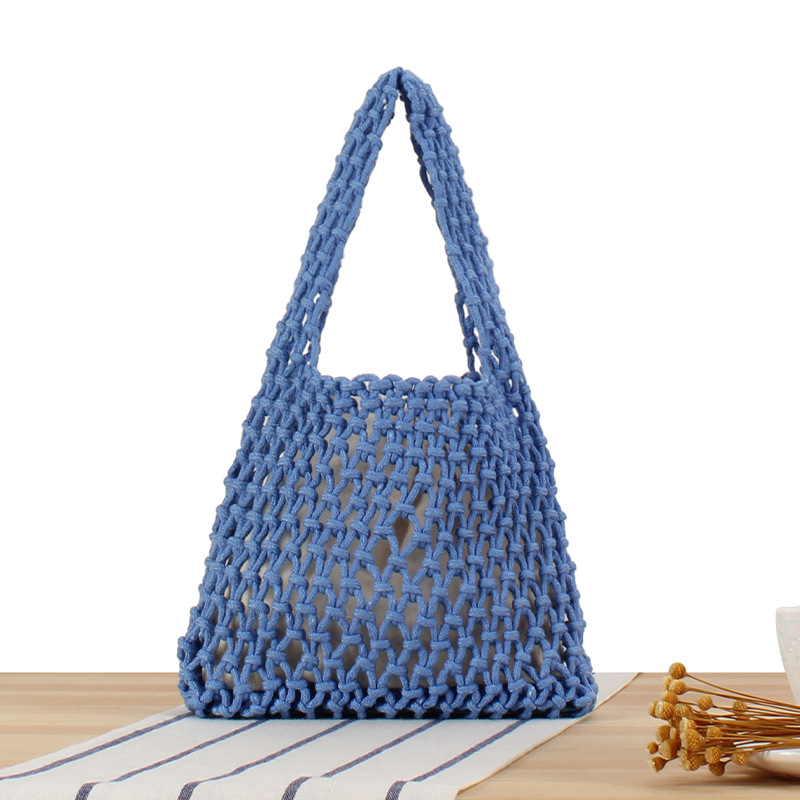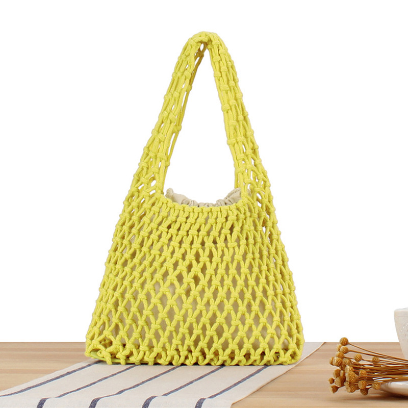 Borsa a mano fatta a mano in corda di cotone macaron, borsa coreana Instagram, borsa da spiaggia intrecciata alla moda e semplice