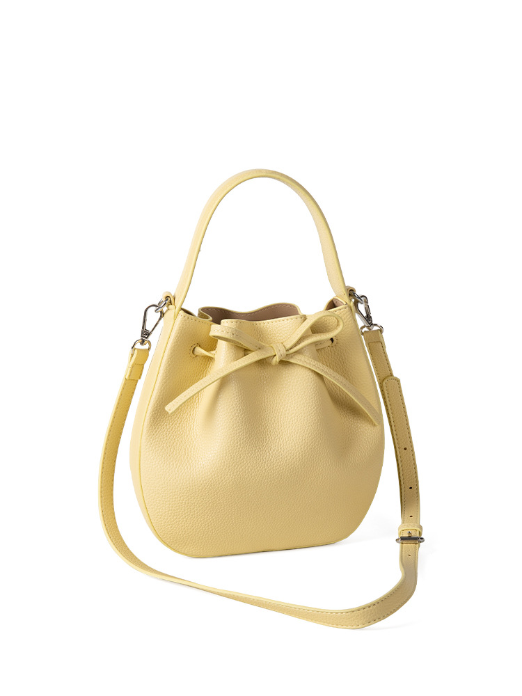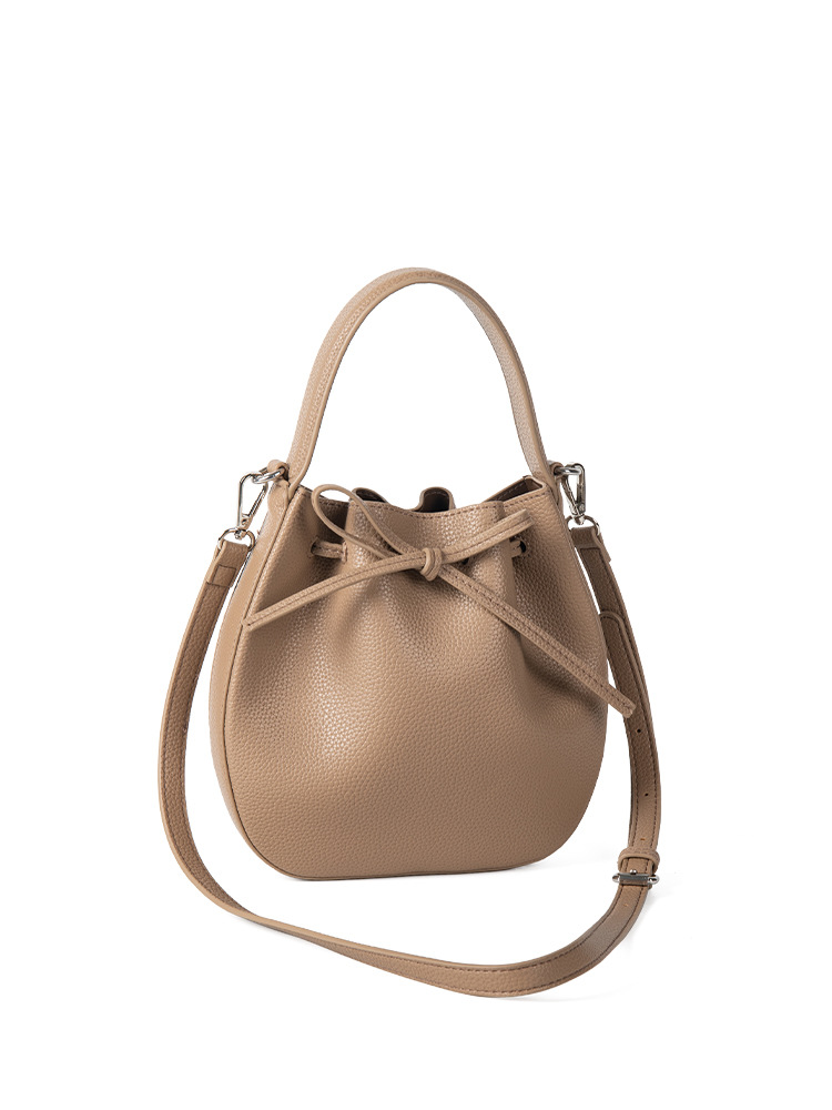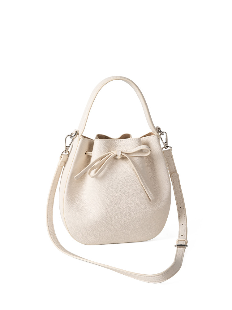2024 new Korean version niche lychee pattern soft leather crossbody shoulder bag, drawstring drawstring drawstring bow hand-held bucket bag