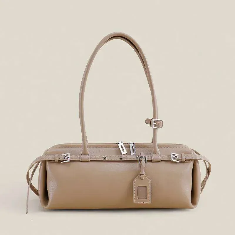 Borse firmate Strict Select Borsa bowling orizzontale in pelle di mucca di alta qualità, multiuso, per il tempo libero, colore kakhi, da donna