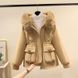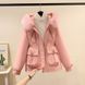 Borsone con bottoni in corno per donna, autunno e inverno 2024, nuova giacca dimagrante in cotone, alla moda, foderata in pelliccia spessa