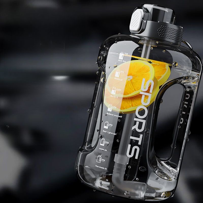Bottiglia d'acqua sportiva in plastica Tritan di grande capacità, portatile, resistente alle alte temperature, con manico