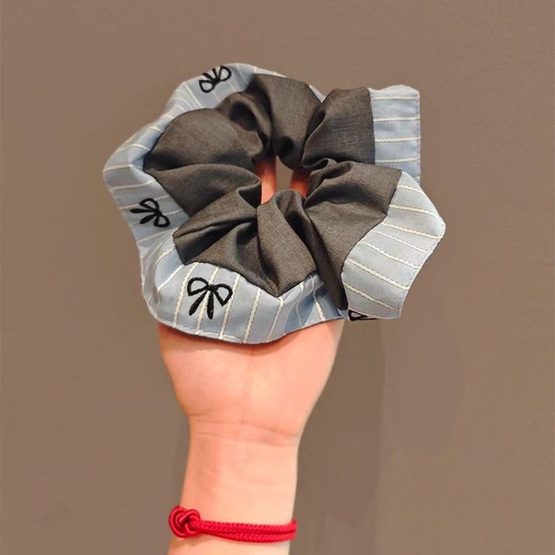 Korean Style Quality Hair Tie Gray Blue Embroidered Bowknot Scrunchie Elegant Ponytail Hair Rope Hair Accessory for Women Non-damaging Hair Tie
