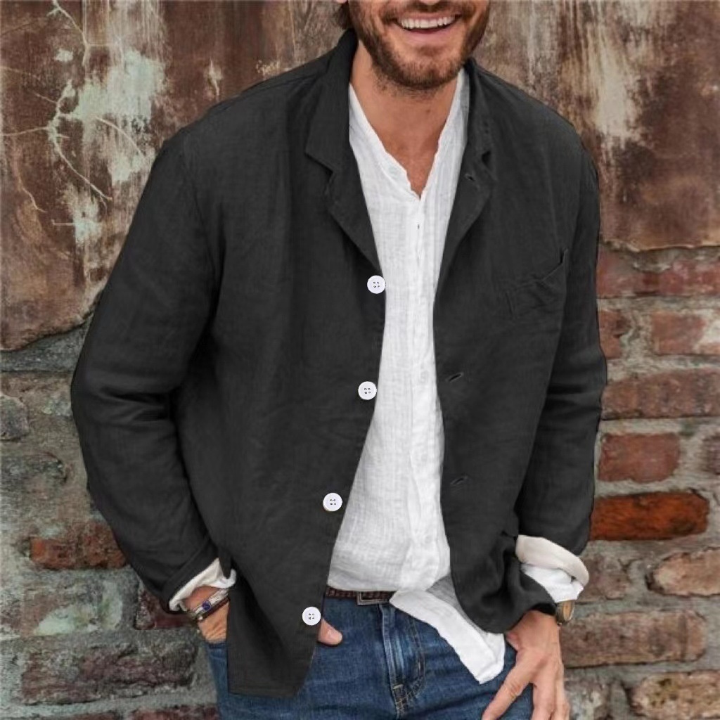 ragazzo Ragazzo 2025 Primavera Autunno Europeo e Americano Uomo Largo Semplice Tinta Unita Manica Lunga Giacca Cotone Lino Elegante Piccolo