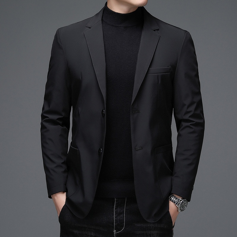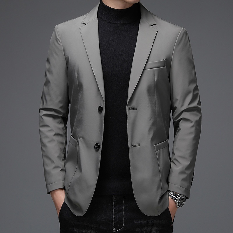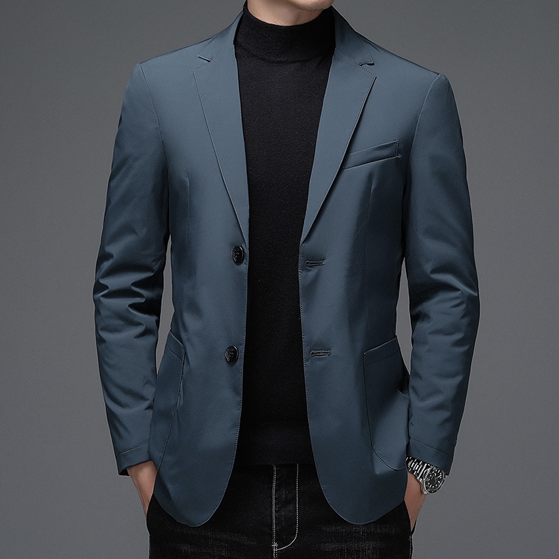 Material function:Windproof, No Ironing Needed,Product Source Category:In Stock,Brand:Lansboter/Laisboter,Item Number:LB2258,Bargain Category:Fashionable Urban 24-35 Years Old,Design:Slim Fit,Collar Style:Tuxedo Lapel,Front placket:Single-row Two-Button,Style:Light Business,Pattern:Solid Color,Error margin:1-3cm.,Suitable for the season:Autumn,Is it in stock?:No,Fabric Name:Synthetic Blend Fabric,Content of the main fabric components:100,Main fabric composition:Polyester Fiber Dacron,Lining Composition:Polyester Fiber Dacron,Applicable Scenarios:Casual,Slit Design:No slits,Applicable to the target audience:Youth,Craftsmanship:Non-iron treatment,Year/Season of Release:Autumn 2025,Design details:other,Length of clothing:Regular,Sleeve Length:Long Sleeve,Clothing Pocket Styles:3D Patch Pocket,Color:Khaki, blue, black,Size:170/M, 175/L, 180/XL, 185/2XL, 190/3XL, 195/4XL,Design of Clothing Hem:Round Hem,Main downstream platforms:, , , , Independent Station, ,Main sales regions:Europe, South America, Southeast Asia, North America, Northeast Asia,We have authorized private labels available:yes,Is it exclusively for cross-border export supply?:yes,Original Design Source:No,Is there a quality inspection report?:No,Suitable age group:adult,Filled with Down:80% gray duck down,Applicable Gender:Male,Receive the Label:No Collar Label,Product Category:Casual Blazer,What is the source type?:Domestic First and Second-Line Brands,Hang Tag:With tags