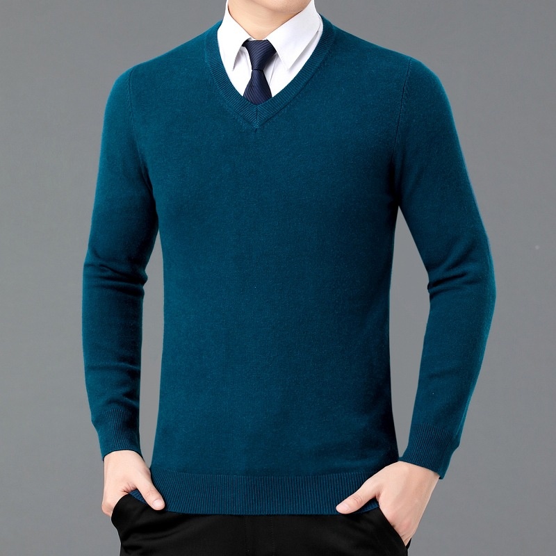 Maglione invernale in lana per uomo di mezza età, versatile, classico, con scollo a V, tinta unita, da uomo Boy Boy 2024