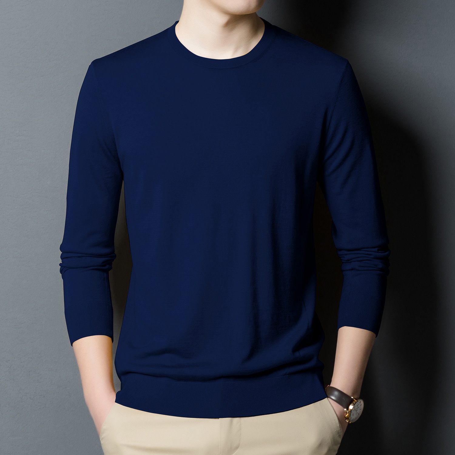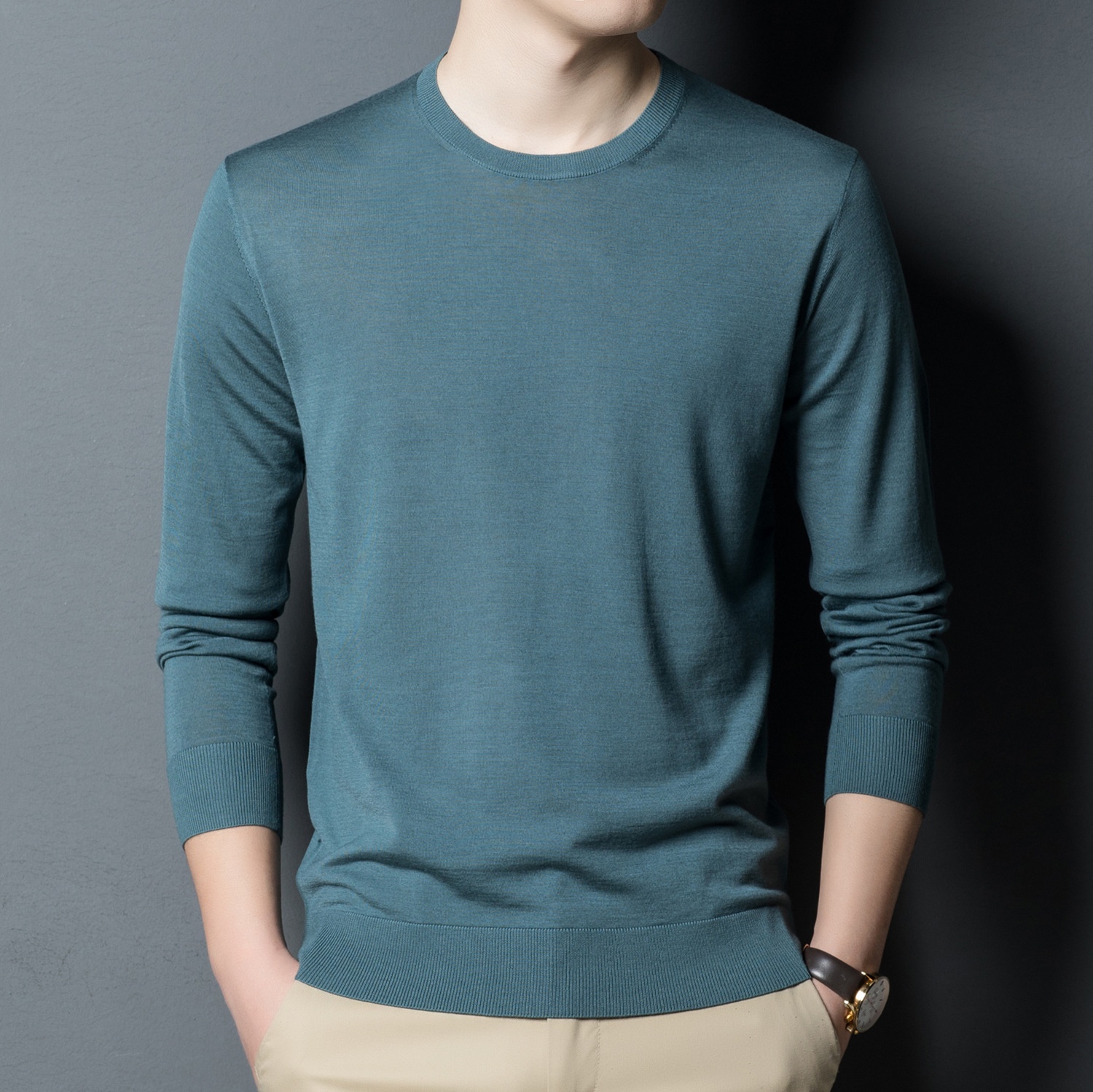Maglione in lana fine anni '60, lavabile in lavatrice, da uomo, girocollo stretto, manica lunga, lavorato a maglia, primavera autunno, sottile