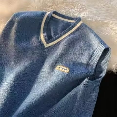 Product Source Category:In Stock,Material function:Waterproof, stain-resistant,Item Number:XB 556:,Brand:Western City,Design 1:Pullover,Design:Loose Fit,Collar Style:V-neckline,Sleeve Length:Sleeveless,Thickness:Average,Style:Korean Style,Design details:Color Blocking,Bargain Category:Youth Fashion 18-24 Years Old,Is it in stock?:yes,Inventory Type:Complete order,Suitable for everyone:Teenagers,Year/Season of Release:Autumn 2025,Fabric Name:Cotton Blend,Main fabric composition:Cotton,Content of the main fabric components:68,Applicable Scenarios:Casual,Suitable for the season:Autumn,Applicable to the target audience:Teenagers,Color:White, blue, black,Size:S,M,L,XL,2XL,Craftsmanship:Jacquard Pattern,Original Design Source:No,Is there a quality inspection report?:No,Suitable age group:adult,Applicable Gender:Male,Product Category:Knit Sweater