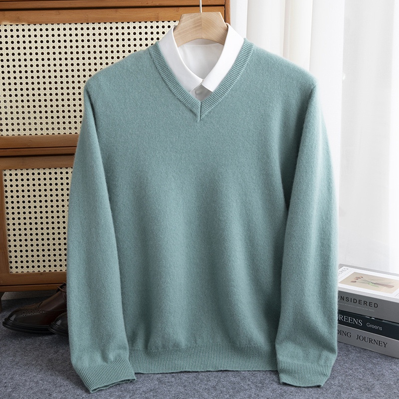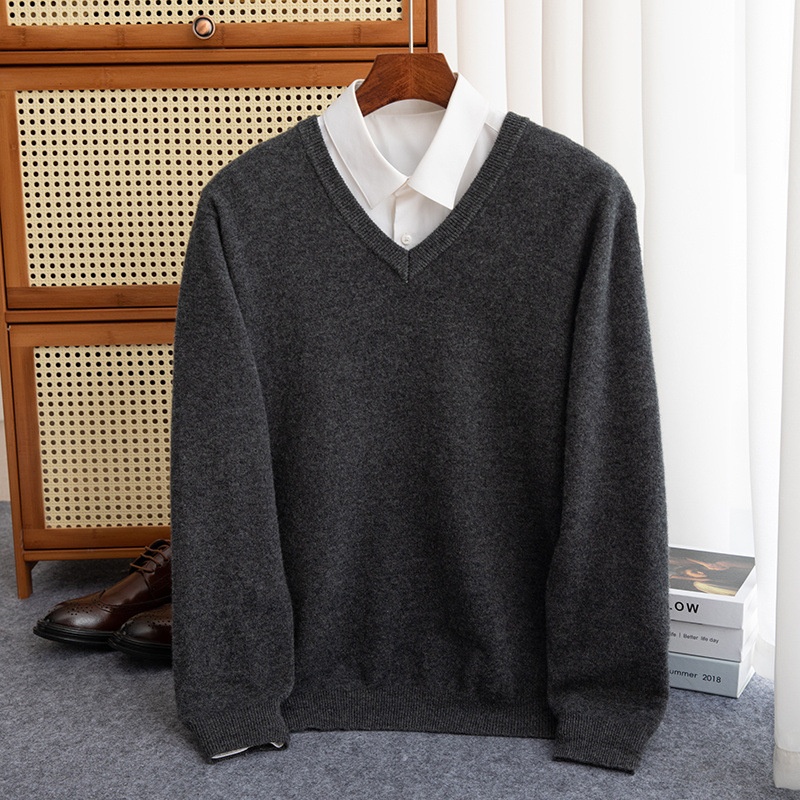 ragazzo Ragazzo Ragazzo Ragazzo Felpa in Maglia Autunno Inverno Largo Uomo Collo Base 2023 Tinta Unita Cashme Ispessito Scollo a V Manica Lunga Slim