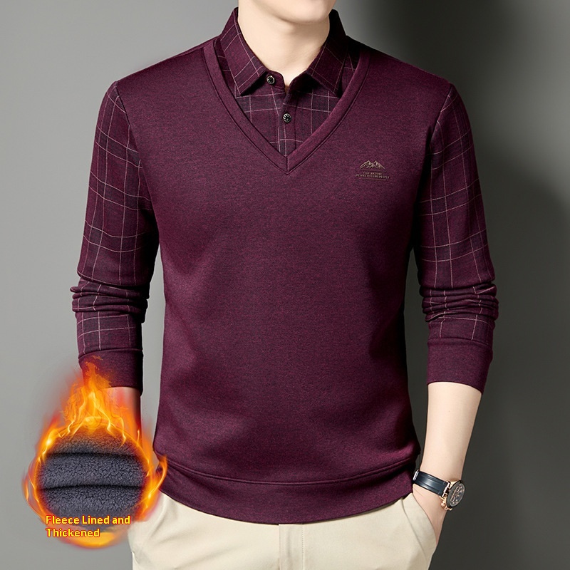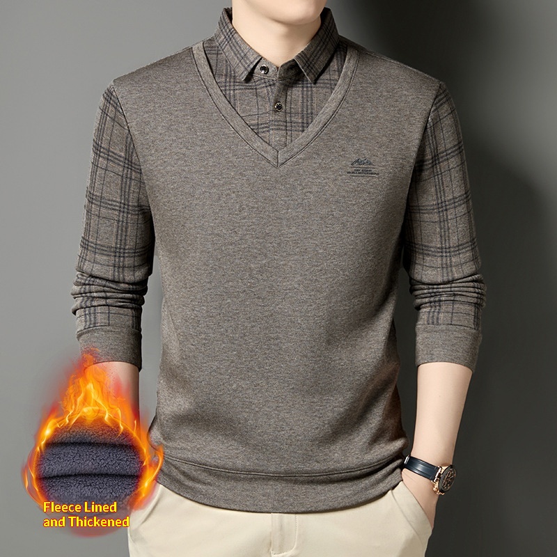 Ragazzo Ragazzo Ragazzo Maglione monopezzo in pile con lana di pecora, maglione lavorato a maglia a due pezzi ispessito per uomo, base calda per papà in autunno e inverno