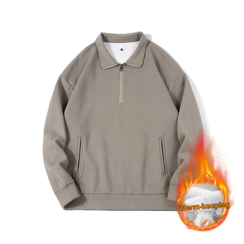 Product Source Category:In Stock,Style:Basic Popular,Sleeve Length:Long Sleeve,Design:Loose Fit,Pattern:Solid Color,Special craftsmanship:Zipper,Thickness:Thickened,Suitable for the season:Autumn,Bargain Category:Youth Fashion 18-24 Years Old,Item Number:81094,Brand:Kunhai Pengyun,Year/Season of Release:Autumn 2022,Fabric Name:Chinese Cotton Sweatshirt,Content of the main fabric components:67,Main fabric composition:Cotton,Applicable Scenarios:Casual,Inventory Type:Complete order,Color:Black, gray-green, beige, fleece gray-green, fleece black,Size:M runs large, L runs large, XL runs large, 2XL runs large, 3XL runs large,Is it exclusively for cross-border export supply?:No,Clothing Style Details:Zipper Decoration,Original Design Source:No,Is there a quality inspection report?:No,Quality Inspection Report Number:01062200001392,Material function:No ironing needed,New Arrival Types:Autumn and Winter New Collection,Receive the Label:With Collar Label,Product Category:POLO Shirt,What is the source type?:Direct Source Factory,Hang Tag:With tags,What type of agent?:Wholesale Agent