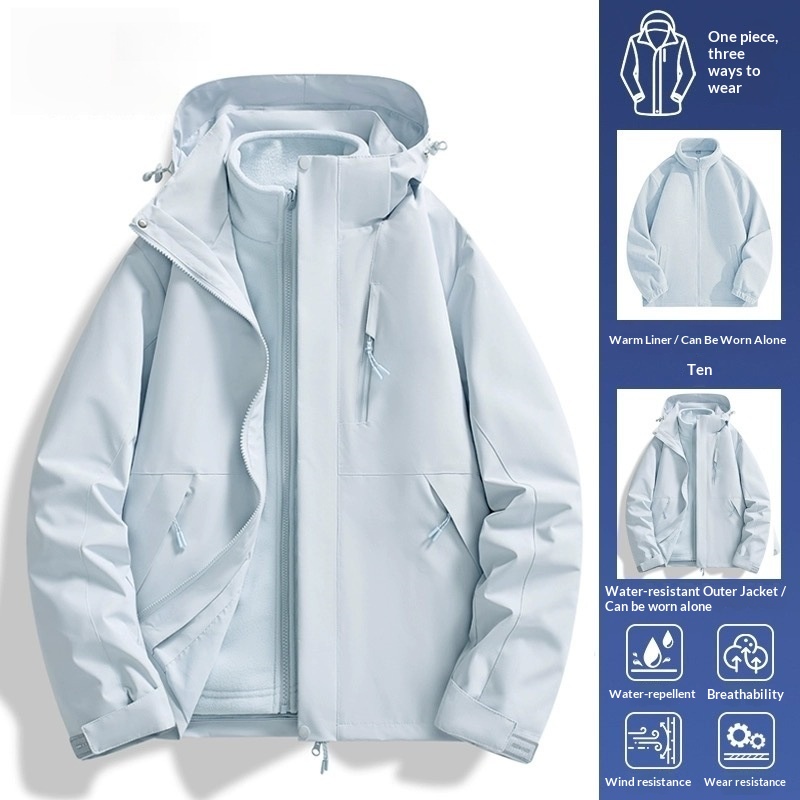 Product Source Category:In Stock,Is it in stock?:yes,Inventory Type:Complete order,Fastest shipping time:1-3 days,Product Category:Softshell Jacket,Functionality:Breathable, waterproof, thermal insulation, wear-resistant, windproof, dirt-resistant,Fabric:Waterproof Fabric,Suitable for the season:Winter, Spring, Autumn,Pattern:Solid color, color-blocking,Brand:Mountain Trailblazer,Is it for export?:No,Suitable for Sports:Rock Climbing, Skiing, Hiking, Camping, Fishing, Equestrian, Shooting, Outdoor Climbing, Traveling, Outings, Hunting, Cycling, Self-Driving, Ice Sports,Applicable Gender:Unisex / Suitable for both men and women,Error margin:0-1CM,Style number:96888,Origin:Fujian Quanzhou,Design:Cardigan,Lining Material:Polyester,Quality level:Qualified product,Suitable age group:Adult,Is it hooded or not?:Hooded,Combination Form:Two-piece set,Is it detachable?:Removable,With or without liner:With Inner Liner,Fabric Composition:Polyester,Faux fur collar material:None,Does it have a fur collar?:No Fur Collar,Waterproof Rating:8000mm,Item Number:96888,Applicable Scenarios:Running Sports, Fitness Equipment, Health Massage, Bodybuilding, Chess and Card Entertainment, Musical Instruments, Sports Trends, Cycling Sports, Ice and Snow Sports, Extreme Challenges, Hiking and Camping, Shooting Sports, Martial Arts Self-Defense, Dance Sports, Basketball and Volleyball Sports, Venue Amusement Equipment, Fishing Sports, Table Tennis and Badminton Sports, Other Ball Sports, Swimming and Water Sports, Accessories and Protective Gear, Other,Color:Unisex - Sunflower 3-in-1 / Detachable Inner Liner, Women's - Moonlight Blue 3-in-1 / Detachable Inner Liner, Women's - Moon Shadow Yellow 3-in-1 / Detachable Inner Liner, Women's - Pink and White Orange 3-in-1 / Detachable Inner Liner, Women's - Glacier Blue 3-in-1 / Detachable Inner Liner, Women's - Purple Rose Red 3-in-1 / Detachable Inner Liner, Women's - Chestnut Pink 3-in-1 / Detachable Inner Liner, Women's - Mineral Pink 3-in-1 / Detachable Inner Liner, Women's - Snowy Purple 3-in-1 / Detachable Inner Liner, Women's - Mineral Pink - Warm White 3-in-1 / Detachable Inner Liner, Women's - Snowy Purple - Warm White 3-in-1 / Detachable Inner Liner, Women's - Hibiscus Purple - Misty Purple 3-in-1 / Detachable Inner Liner, Unisex - Misty Gray Blue 3-in-1 / Detachable Inner Liner, Unisex - Liquid Purple 3-in-1 / DetachableMen and Women Same Style - Black Three-in-One / Detachable Inner Liner, Men and Women Same Style - Mist Green Three-in-One / Detachable Inner Liner, Men and Women Same Style - Green Fruit Three-in-One / Detachable Inner Liner, Men and Women Same Style - Gray Three-in-One / Detachable Inner Liner, Men and Women Same Style - Light Khaki Three-in-One / Detachable Inner Liner, Men and Women Same Style - Brown Yellow Three-in-One / Detachable Inner Liner, Men and Women Same Style - Green Three-in-One / Detachable Inner Liner, Men and Women Same Style - Dark Army Green Three-in-One / Detachable Inner Liner, Men and Women Same Style - Dark Navy Blue Three-in-One / Detachable Inner Liner, Men and Women Same Style - Silver Green Three-in-One / Detachable Inner Liner, Men and Women Same Style - Sunflower Single Flush / Spring and Autumn Style, Women's - Clear Water Blue Single Flush / Spring and Autumn Style, Women's - Chestnut Pink Single Flush / Spring and Autumn Style, Women's - Hibiscus Purple Single Flush / Spring and Autumn Style, Women's - White Vine Purple Single Flush / Spring and Autumn Style, Women's -Spring and Autumn Style, Women's Style - Mineral Powder Single Flush / Spring and Autumn Style, Unisex Style - Condensed Purple Single Flush / Spring and Autumn Style, Unisex Style - Vermilion Red Single Flush / Spring and Autumn Style, Unisex Style - Green Fruit Green Single Flush / Spring and Autumn Style, Unisex Style - Phantom Black Single Flush / Spring and Autumn Style, Unisex Style - Glacier Gray Single Flush / Spring and Autumn Style, Unisex Style - Jade Green Single Flush / Spring and Autumn Style, Unisex Style - Jazz Blue Single Flush / Spring and Autumn Style, Unisex Style - Brown Wood Brown Single Flush / Spring and Autumn Style, Unisex Style - Yellow Brown Single Flush / Spring and Autumn Style, Unisex Style - Bronze Green Single Flush / Spring and Autumn Style,Size:S recommended 37.5-45kg , M recommended 45-50kg , L recommended 50-60kg , XL recommended 60-67.5kg , 2XL recommended 67.5-75kg , 3XL recommended 75-82.5kg , 4XL recommended 82.5-90kg , 5XL recommended 90-102.5kg , 6XL recommended 102.5-115kg,Is it exclusively for cross-border export supply?:No,Down types:None,Outdoor Fabric:Technology Three Defenses,What type of liner is it?:Fleece lining,Material:Polyester,Waterproof Breathability Index:More than 20000mm,Applicable objects:Couple,Clothing Craftsmanship:Laser Cutting,Appropriate Season:Four Seasons,Clothing Designs:Regular,Length of clothing:Regular,Patent Type:None,Foreign Trade Export Certification:Contact customer service,Quality Inspection Report Number:Contact customer service