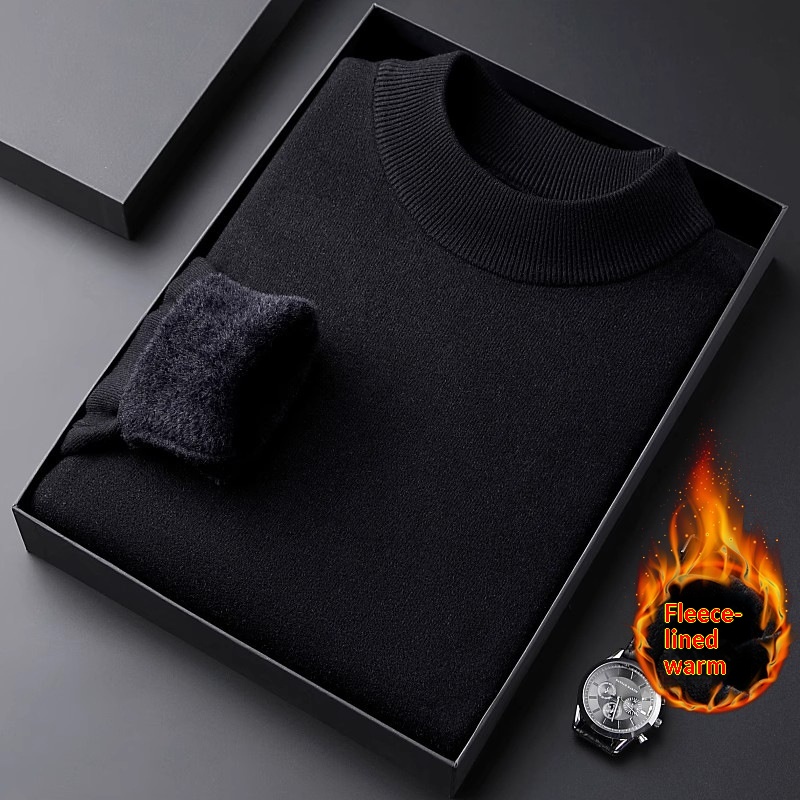 Maglione da uomo con collo alto, nero, convertibile, taglia grande, strato di base per autunno e inverno, vestibilità ampia per