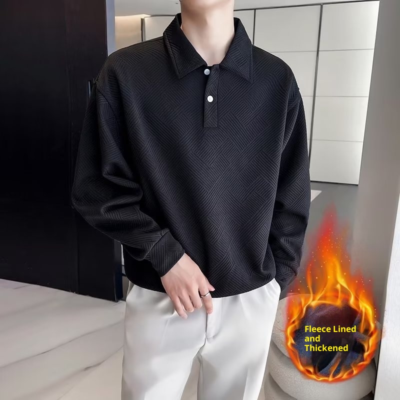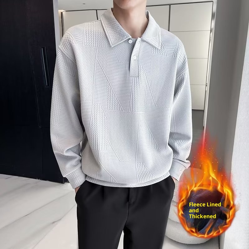 Product Source Category:In Stock,Style:Business casual,Sleeve Length:Long Sleeve,Design:Loose Fit,Pattern:other,Special craftsmanship:other,Thickness:Average,Suitable for the season:Autumn,Bargain Category:Youth Fashion 18-24 Years Old,Item Number:Nine-key T279,Year/Season of Release:Autumn 2025,Fabric Name:Synthetic Blend Fabric,Content of the main fabric components:95,Main fabric composition:Polyester Fiber Dacron,Applicable Scenarios:Casual,Inventory Type:Complete order,Color:Gray regular style, black regular style, gray fleece style, black fleece style,Size:M,L,XL,2XL,3XL,Main downstream platforms:, , Independent Site, Others,Main sales regions:Europe, Southeast Asia, Others,We have authorized private labels available:No,Is it exclusively for cross-border export supply?:yes,Clothing Style Details:Asymmetric,Original Design Source:No,Is there a quality inspection report?:No,Quality Inspection Report Number:-,Material function:other,Product Category:POLO Shirt