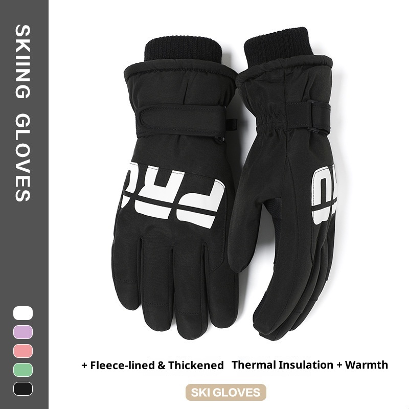 Guanti da sci invernali per bambini, foderati in pile, spessi, caldi, per bici elettrica, antiscivolo, impermeabili, touchscreen, stile coppia