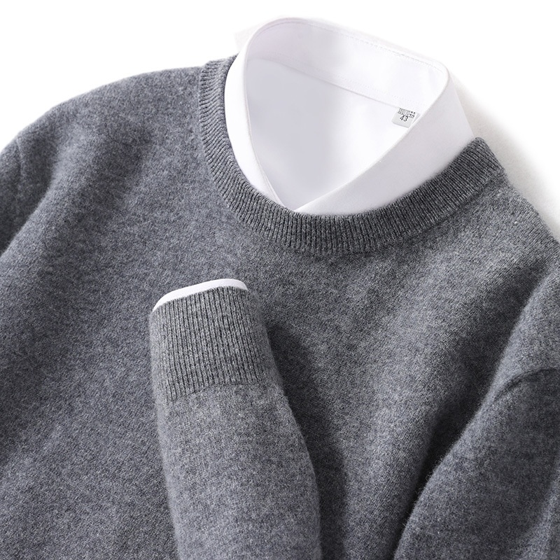 Maglione da uomo in pura lana 100% lavorato a maglia con scollo rotondo, autunno e inverno, senza cuciture, con base in cashmere