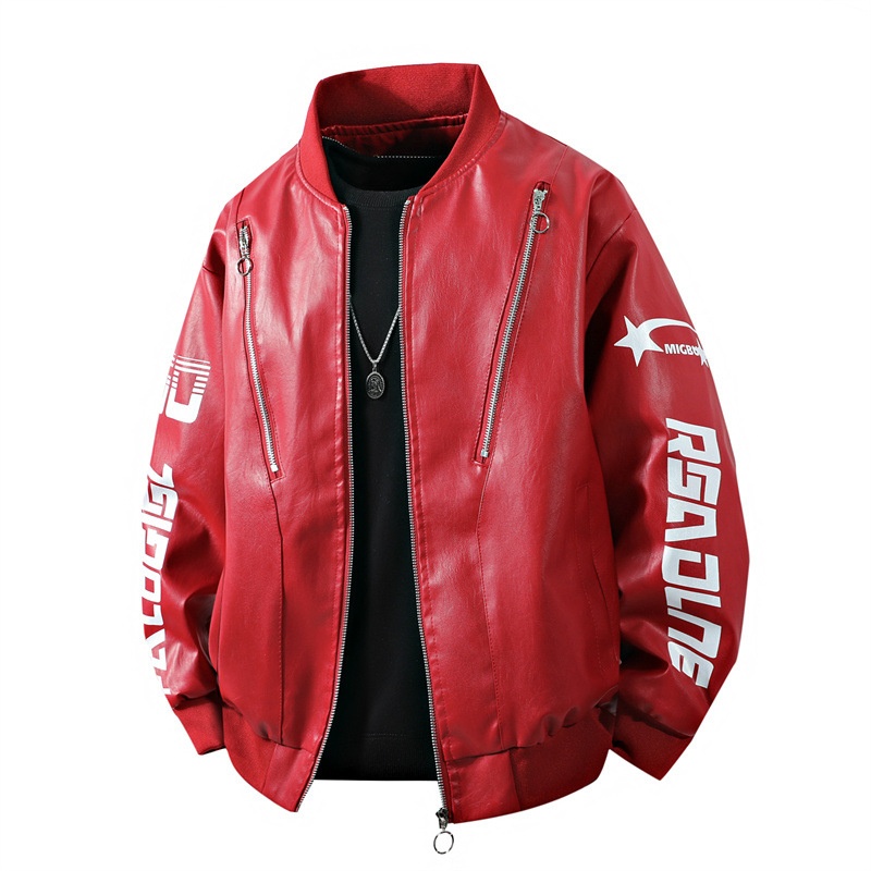 Product Source Category:In Stock,Brand:other,Style:Fashion Urban,Bargain Category:other,Length of clothing:Mid-length 65cm<Length≤80cm,Design:Loose Fit,Collar Style:Turn-down Collar,Front placket:Double-breasted,Year/Season of Release:Spring 2025,Leather Classification:Synthetic Leather,Lining Composition:other,Item Number:PU5676,Suitable for the season:Summer,Applicable to the target audience:other,Craftsmanship:other,Design details:Faux Leather Jacket,Design of Clothing Hem:other,Color:Off-white, black, red,Size:M,L,XL,2XL,3XL,Wearing style:other,Original Design Source:No,Is there a quality inspection report?:No,Quality Inspection Report Number:other,Suitable age group:adult,Applicable Gender:Male,Product Category:Leather Jacket,Leather Types:PU Leather