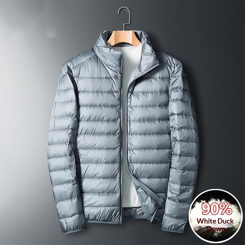 Giacca leggera da uomo con colletto alto, sportiva, autunnale, da ragazzo, con marchio Dropshipping, abbigliamento invernale, calda, in piuma d'anatra bianca