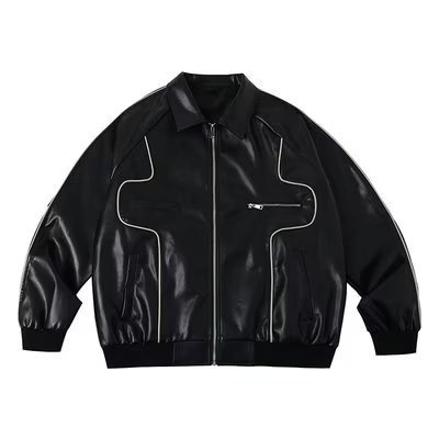Giacca in pelle antivento larga da uomo, stile motociclista retrò europeo americano High Street, marchio alla moda Ins