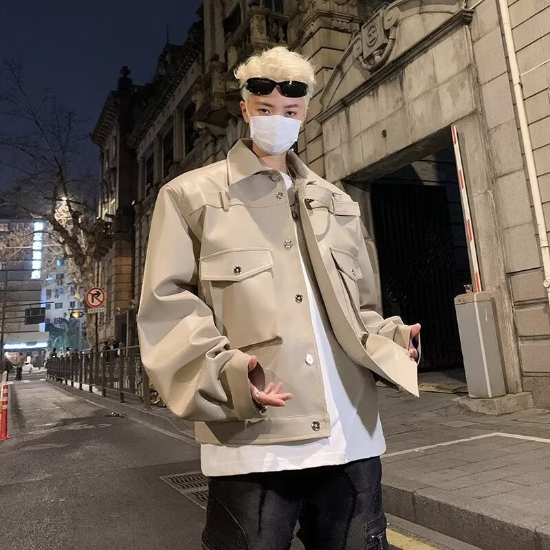 Product Source Category:In Stock,Brand:other,Style:Hong Kong Style,Bargain Category:Youth Fashion 18-24 Years Old,Length of clothing:Regular Style 50cm<Length≤65cm,Design:Loose Fit,Collar Style:Turn-down Collar,Front placket:Single-breasted,Is it hooded or not?:Without a hood,Year/Season of Release:Autumn 2024,Leather Classification:PU,Lining Composition:Polyester Fiber Dacron,Item Number:W636,Applicable Scenarios:Everyday,Suitable for the season:Autumn,Applicable to the target audience:Teenagers,Craftsmanship:Non-iron treatment,Design details:Multi-pocket,Clothing Pocket Styles:Pocket-Saving,Design of Clothing Hem:Straight Hem,Color:Black, khaki color,Size:M,L,XL,XXL,Main downstream platforms:, , , , Independent Station, ,Main sales regions:Africa, Europe, South America, Southeast Asia, North America, Northeast Asia, Middle East,We have authorized private labels available:yes,Is it exclusively for cross-border export supply?:yes,Wearing style:Outerwear,Original Design Source:yes,Is there a quality inspection report?:No,Quality Inspection Report Number:8,Suitable age group:adult,Applicable Gender:Male,Product Category:Leather Jacket,Leather Types:PU Leather