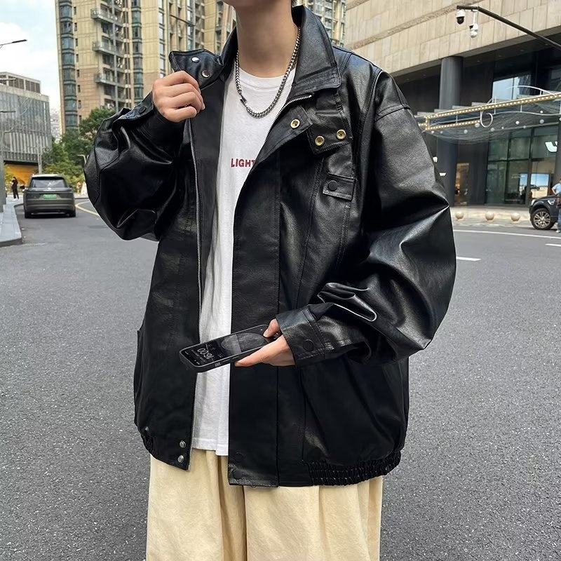 Giacca da motociclista ampia con colletto rovesciato, stile street europeo, primavera e autunno, da uomo, marchio americano alla moda