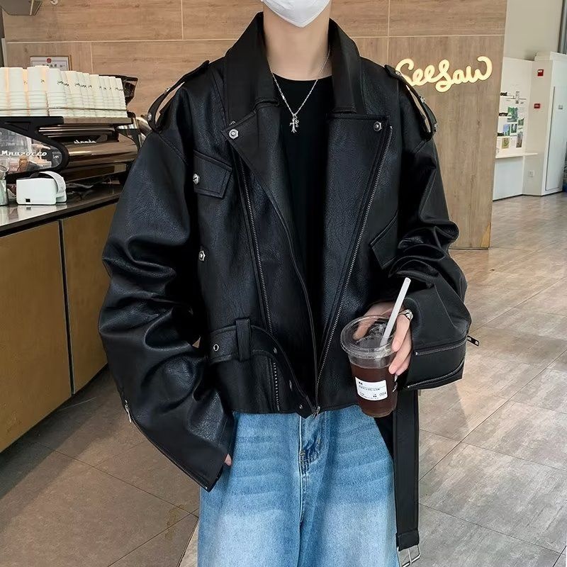 Giacca da motociclista corta in pelle color caffè Melard da uomo, stile street primaverile e autunnale, dal design unico, cool