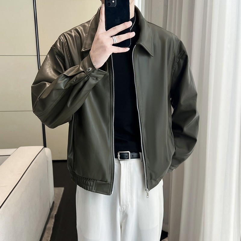 Product Source Category:In Stock,Style:European and American,Bargain Category:Youth Fashion 18-40 Years Old,Length of clothing:Regular Style 50cm<Length≤65cm,Design:Loose Fit,Collar Style:Turn-down Collar,Front placket:Zipper,Is it hooded or not?:Without a hood,Is it in stock?:yes,Inventory Type:Complete order,Year/Season of Release:Autumn 2025,Leather Classification:PU,Lining Composition:Polyester Fiber Dacron,Item Number:MKQ-W639,Applicable Scenarios:Casual,Suitable for the season:Autumn,Applicable to the target audience:Youth,Craftsmanship:Non-iron treatment,Design details:Topstitching,Clothing Pocket Styles:Side Seam Pocket,Design of Clothing Hem:Straight Hem,Color:Black, Green,Size:M, L, XL, 2XL,Main downstream platforms:, , , , Independent Station, ,Main sales regions:Africa, Europe, South America, Southeast Asia, North America, Northeast Asia, Middle East,Is it exclusively for cross-border export supply?:yes,Wearing style:Outerwear,Original Design Source:No,Is there a quality inspection report?:No,Suitable age group:adult,Applicable Gender:Male,Product Category:Leather Jacket,Leather Types:PU Leather