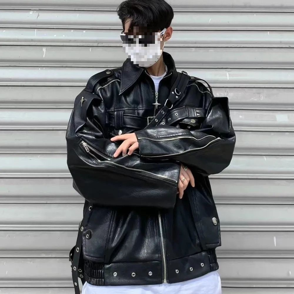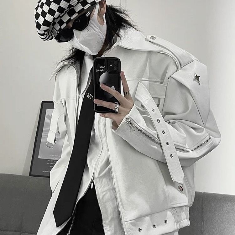 Giacca in pelle bianca retrò da uomo, stile primavera-autunno, modello corto da motociclista europeo e americano