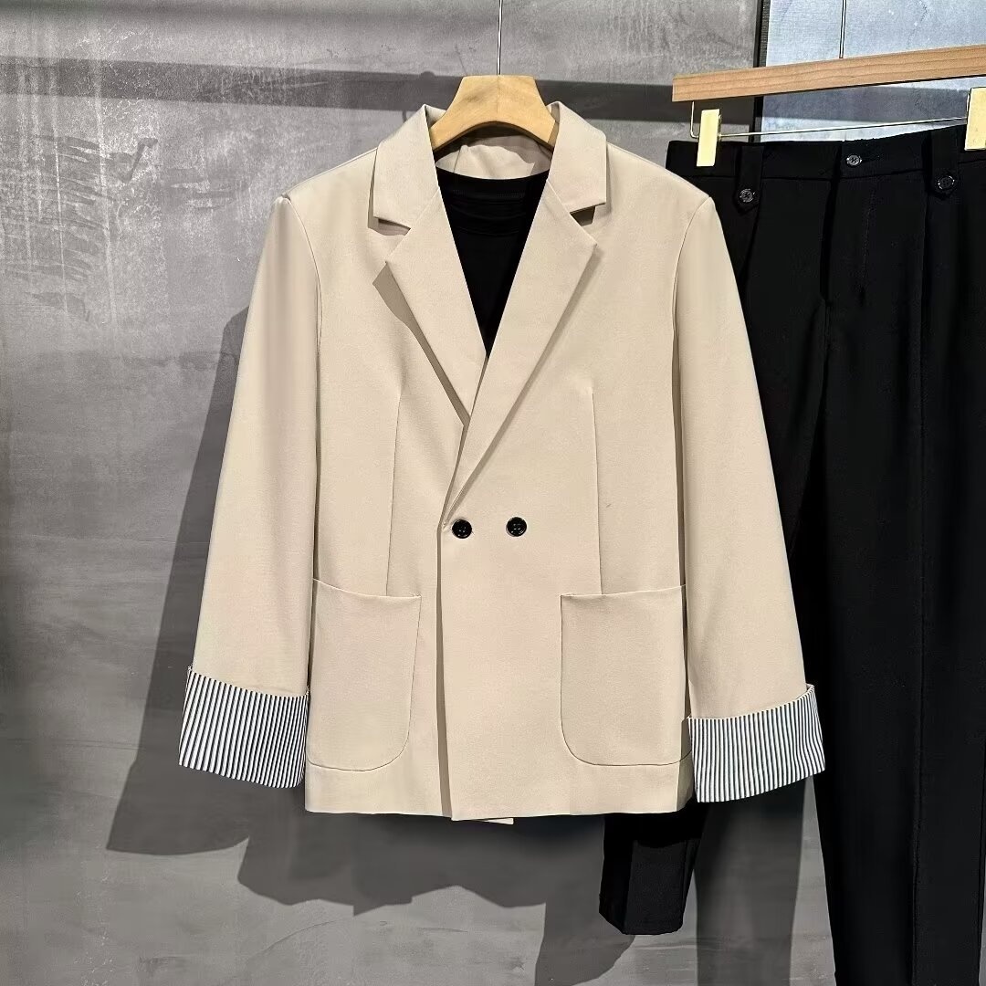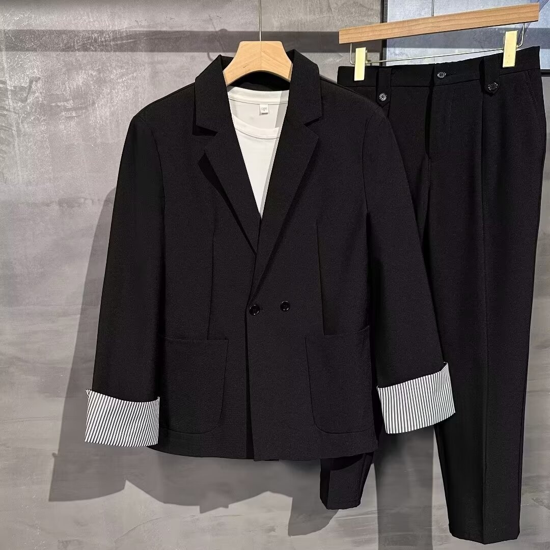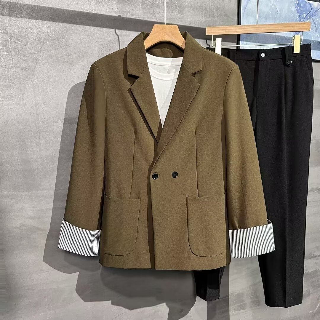Material function:Machine washable, high color fastness,Product Source Category:In Stock,Brand:other,Item Number:TW01,Bargain Category:Youth Fashion 18-24 Years Old,Design:Slim Fit,Collar Style:Tuxedo Lapel,Front placket:Single-row Two-Button,Style:Korean Style,Pattern:Solid Color,Error margin:1-3cm.,Suitable for the season:Spring and Autumn Season,Is it in stock?:yes,Inventory Type:Complete order,Fabric Name:Polyester fiber,Content of the main fabric components:Greater than 90,Main fabric composition:Polyester Fiber Dacron,Lining Composition:Polyester Fiber Dacron,Applicable Scenarios:Casual,Slit Design:No slits,Applicable to the target audience:Youth,Craftsmanship:High-Temperature Styling,Year/Season of Release:Autumn 2025,Design details:Button Decoration,Length of clothing:Regular,Sleeve Length:Long Sleeve,Clothing Pocket Styles:3D Patch Pocket,Color:Black Suit, Khaki Suit, Brown Suit, Black Blazer + Khaki Pants, Khaki Suit Khaki Blazer + Black Pants, Brown Suit Brown Blazer + Black Pants, Black Pants,Size:S,M,L,XL,2XL,3XL,4XL,5XL,Design of Clothing Hem:Straight Hem,Main downstream platforms:, , , , Independent Station, , Others,Main sales regions:Africa, Europe, South America, Southeast Asia, North America, Northeast Asia, Middle East, Others,We have authorized private labels available:No,Is it exclusively for cross-border export supply?:yes,Original Design Source:No,Is there a quality inspection report?:No,Quality Inspection Report Number:None,Suitable age group:adult,Applicable Gender:Male,Product Category:Casual Blazer
