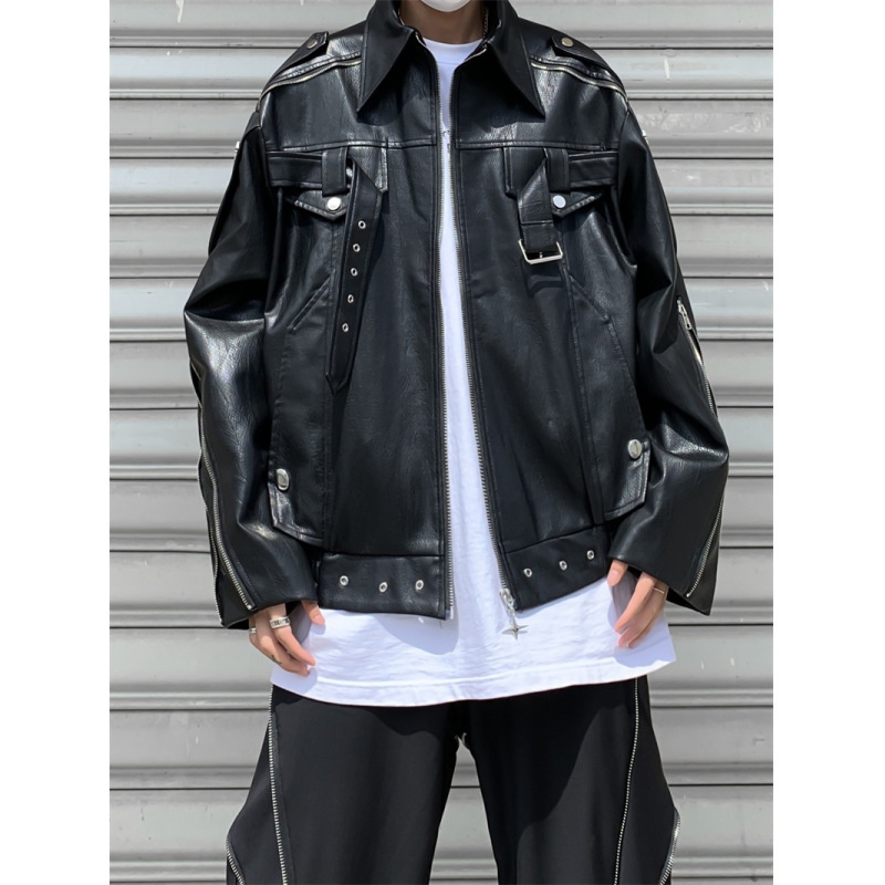 Giacca da motociclista in pelle PU di alta qualità, stile punk decostruito, stile europeo e americano, versatile, tendenza