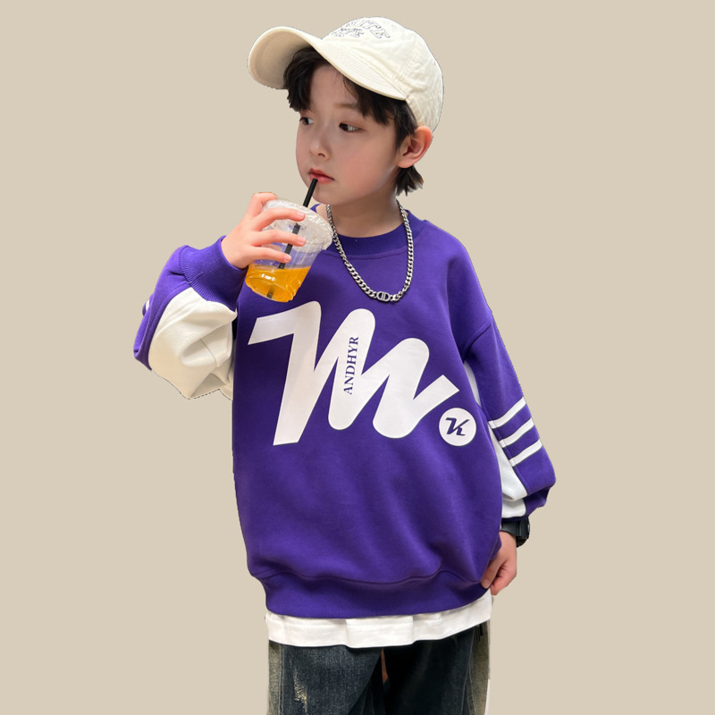 Boys' hoodie for spring and autumn 2024 new style, children's autumn top, mid to large children's early autumn base shirt, stylish top