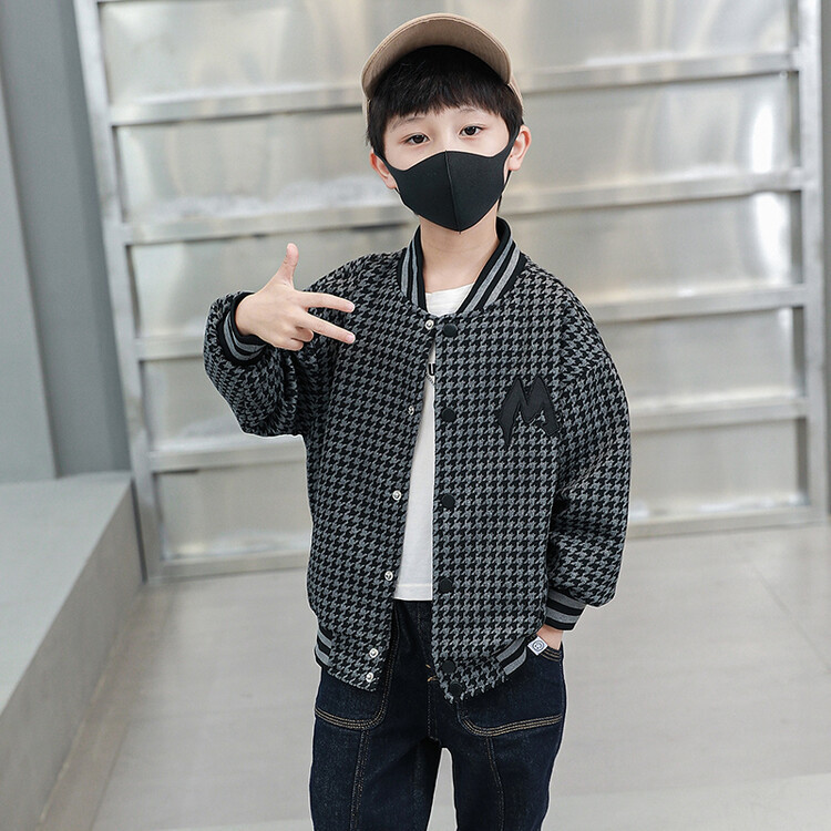 Boys' Thousand Bird Grid Baseball Suit 2023 Spring and Autumn New Children's Cool and Trendy Jacket for Children's Top