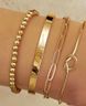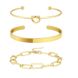 Snake Bone Chain Paperclip Bracelet Set Simple Plain Chain Bracelet Stainless Steel Open Heart Bracelet