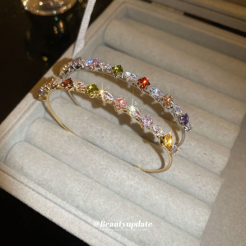 Bracciale con apertura a stella geometrica in zircone colorato, primavera estate, nuovo braccialetto leggero, alla moda e di alta qualità