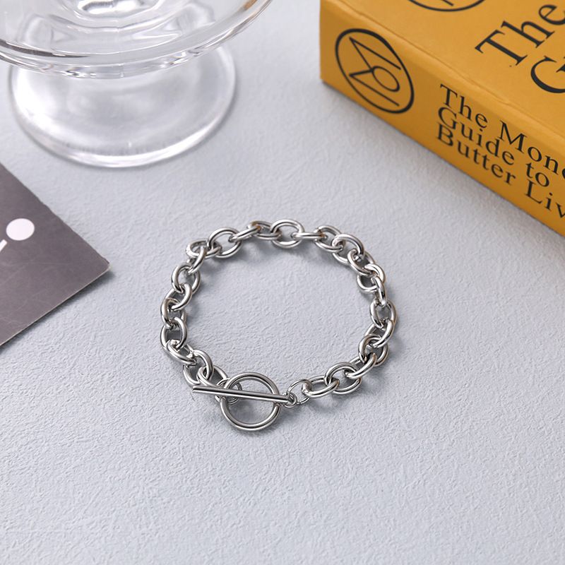 Domineering Punk Hip-Hop Stainless Steel Interlocking Angle O-Shaped Trendy Titanium Steel One-Word Buckle Bracelet for Men and Women