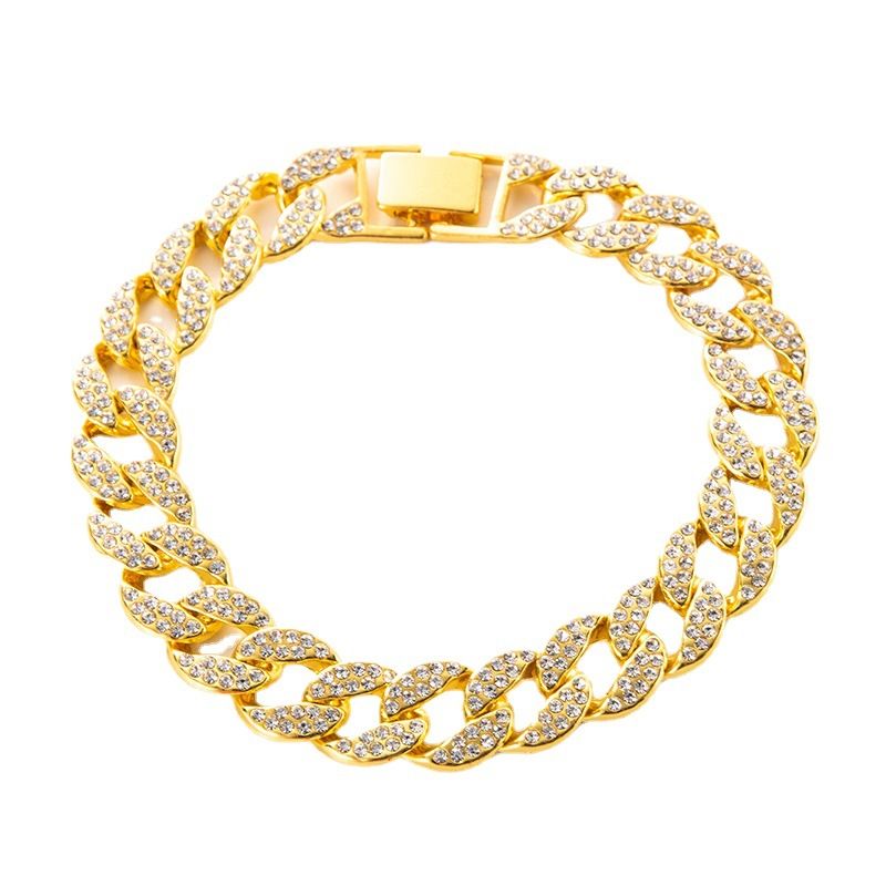 15MM Full Diamond Alloy Cuban Bracelet Foot Chain Hip Hop Jewelry Summer Versatile U-shaped Cuban Bracelet