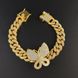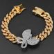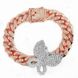 Bracciale cubano unisex alla moda con micro pavé di zirconi rosa a forma di farfalla Hip Hop